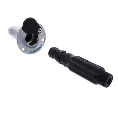 - op de 3/4" uitwendige schroefdraad van de bajonetadapter past de krulslang van de JABSCO HOTSHOT dekwasset.