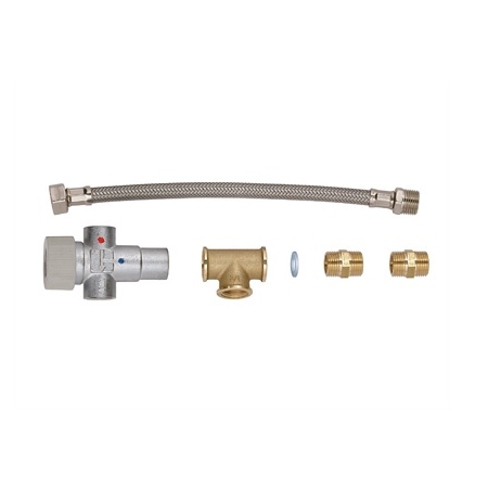 met deze drieweg-mengkraan kunt u de temperatuur van het drinkwater uit de boiler, dat veelal te hoog is (± 95°C) reduceren naar 38°C tot 48°C, waardoor ongelukken door verbranding met het te hete water kunnen worden voorkomen.