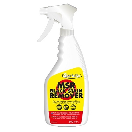 Spuit of verdeel de MSR Zwarte Vlekken Verwijderaar op bootkappen, vinylkussens en -zittingen, luifels, tegels, voegen, douchecabines en-gordijnen, matten, markiezen, etc. Spoel of veeg het oppervlak niet af voordat de vlekken zijn verdwenen. Voor hardnekkige vlekken kan een tweede behandeling nodig zijn. Na gebruik goed afspoelen. Test het oppervlak eerst op kleurbestendigheid op een onopvallende plek, voordat u doorgaat met de algehele reiniging.
